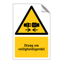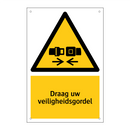 Waarschuwingsbord met de tekst Draag uw veiligheidsgordel