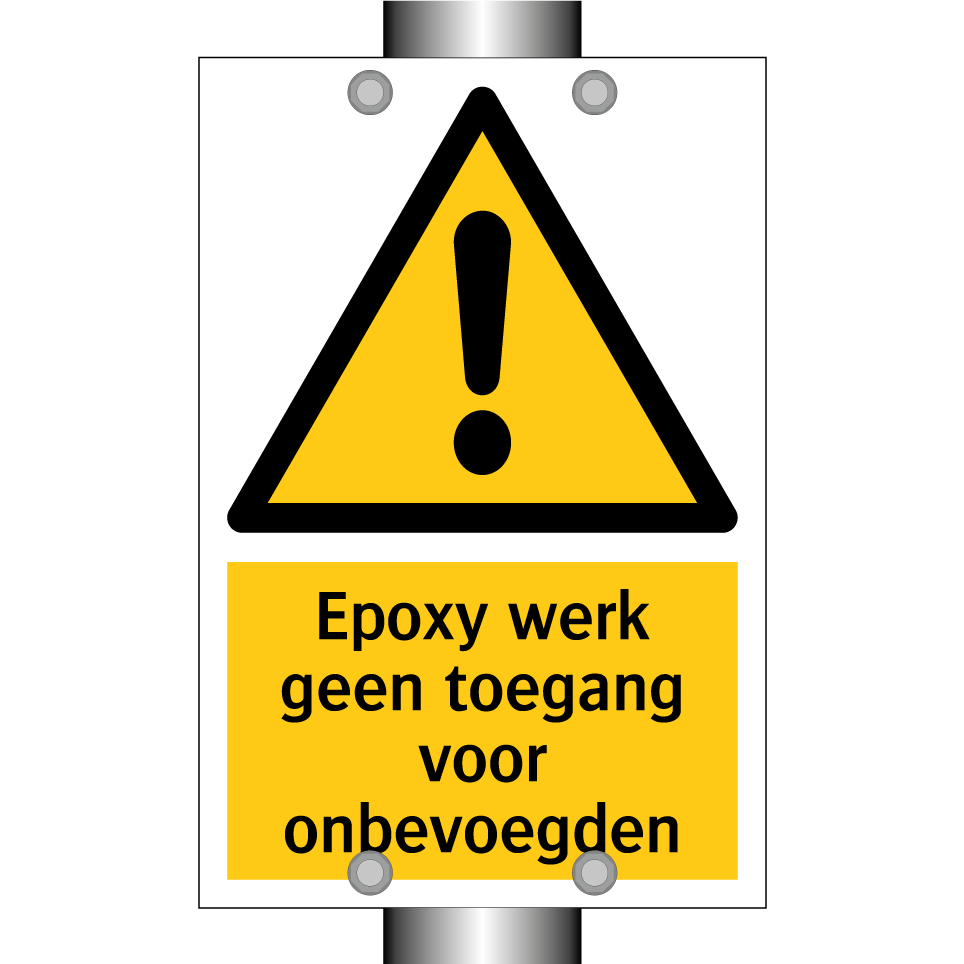 Waarschuwingsbord met de tekst Epoxy werk geen toegang voor onbevoegden