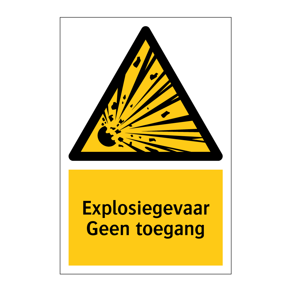 Waarschuwingsbord met de tekst Explosiegevaar Geen toegang