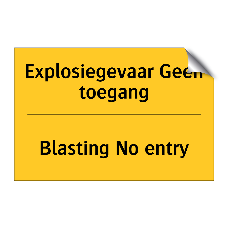 Waarschuwingsbord met de tekst Explosiegevaar Geen toegang / Blasting No entry