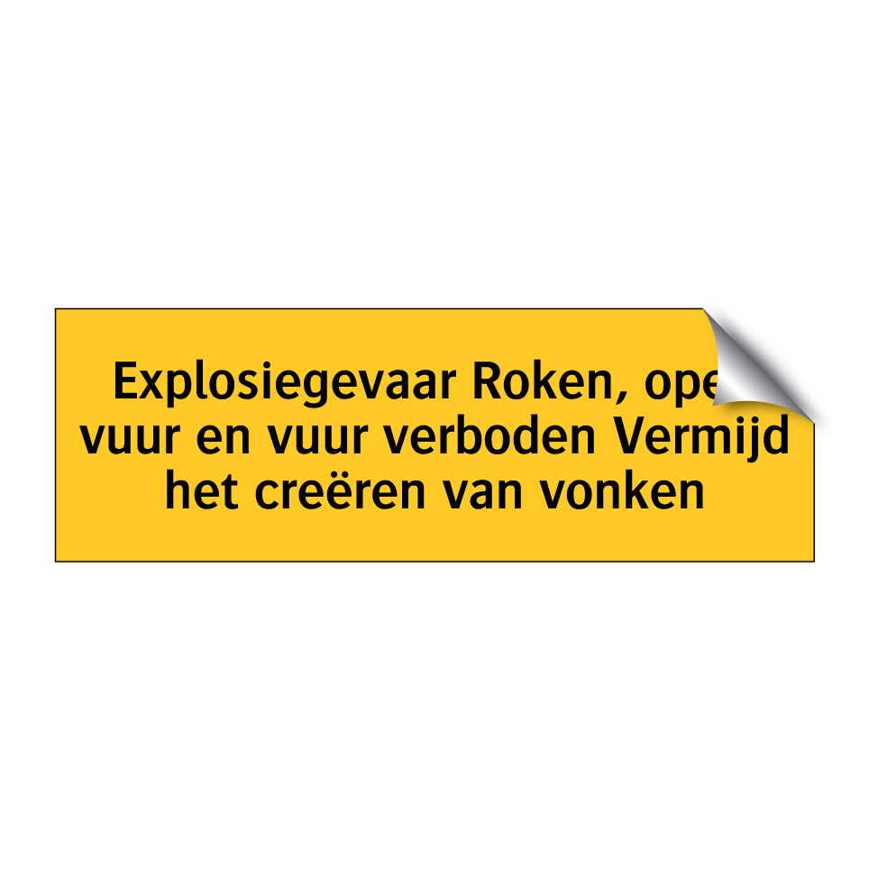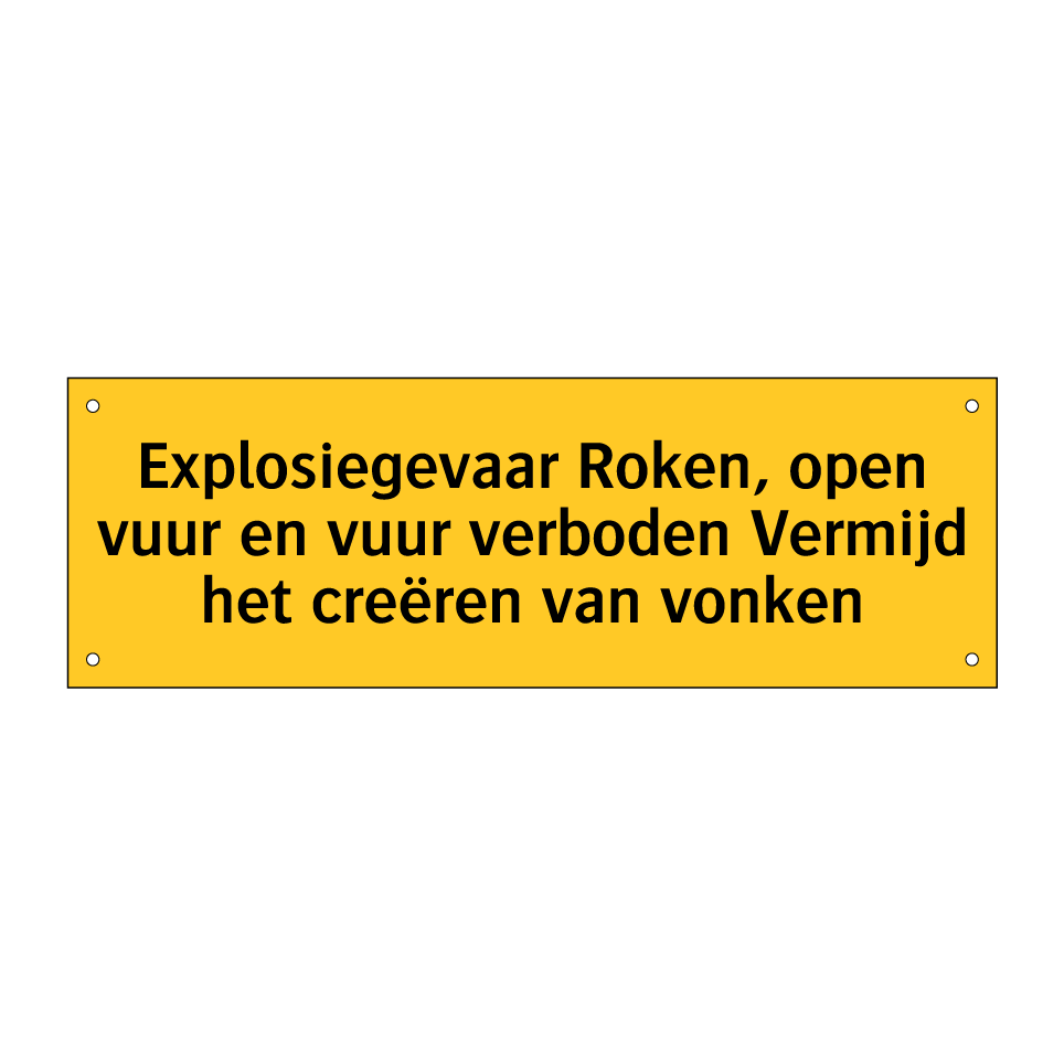 Waarschuwingsbord met de tekst Explosiegevaar Roken, open vuur en vuur verboden Vermijd het creëren van vonken