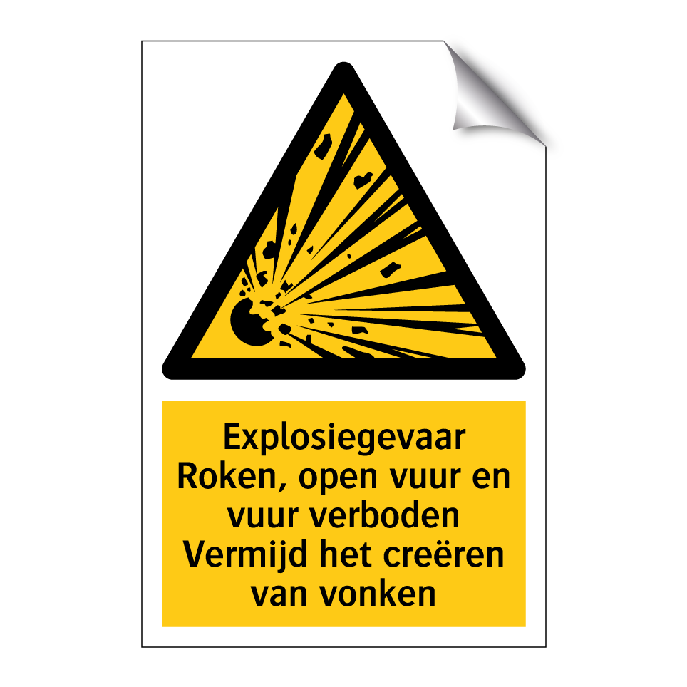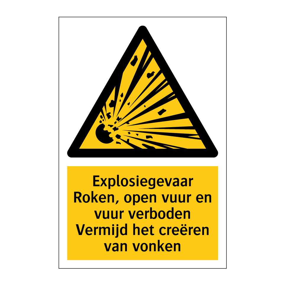 Deze waarschuwingsbord is essentieel voor het waarborgen van de veiligheid in omgevingen waar explosiegevaar aanwezig is. Plaats deze bord op strategische locaties zoals werkplaatsen, opslagruimtes, laboratoria en andere risicovolle gebieden om personeel en bezoekers te waarschuwen voor de gevaren van roken, open vuur en vonken. Door deze duidelijke en opvallende waarschuwing te gebruiken, helpt u ongelukken te voorkomen en de veiligheid te verhogen. Dit waarschuwingsbord is een onmisbaar onderdeel van uw veiligheidsmaatregelen en draagt bij aan een veilige werkomgeving.