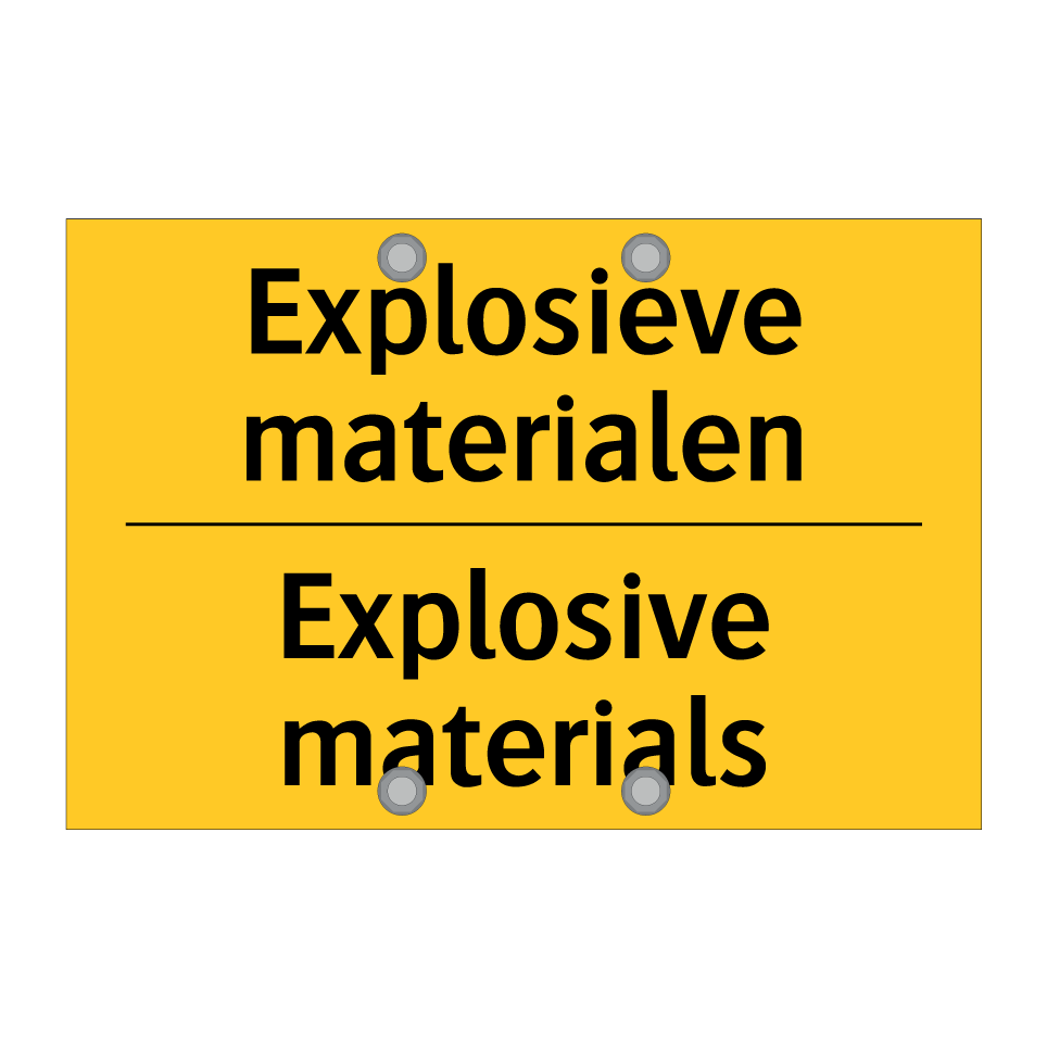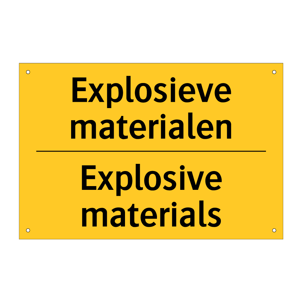 Waarschuwingsbord met de tekst Explosieve materialen / Explosive materials