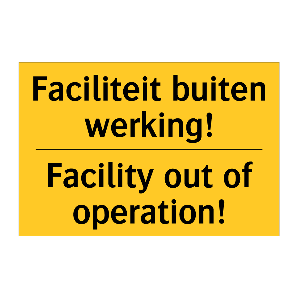 Waarschuwingsbord met de tekst Faciliteit buiten werking! / Facility out of operation!