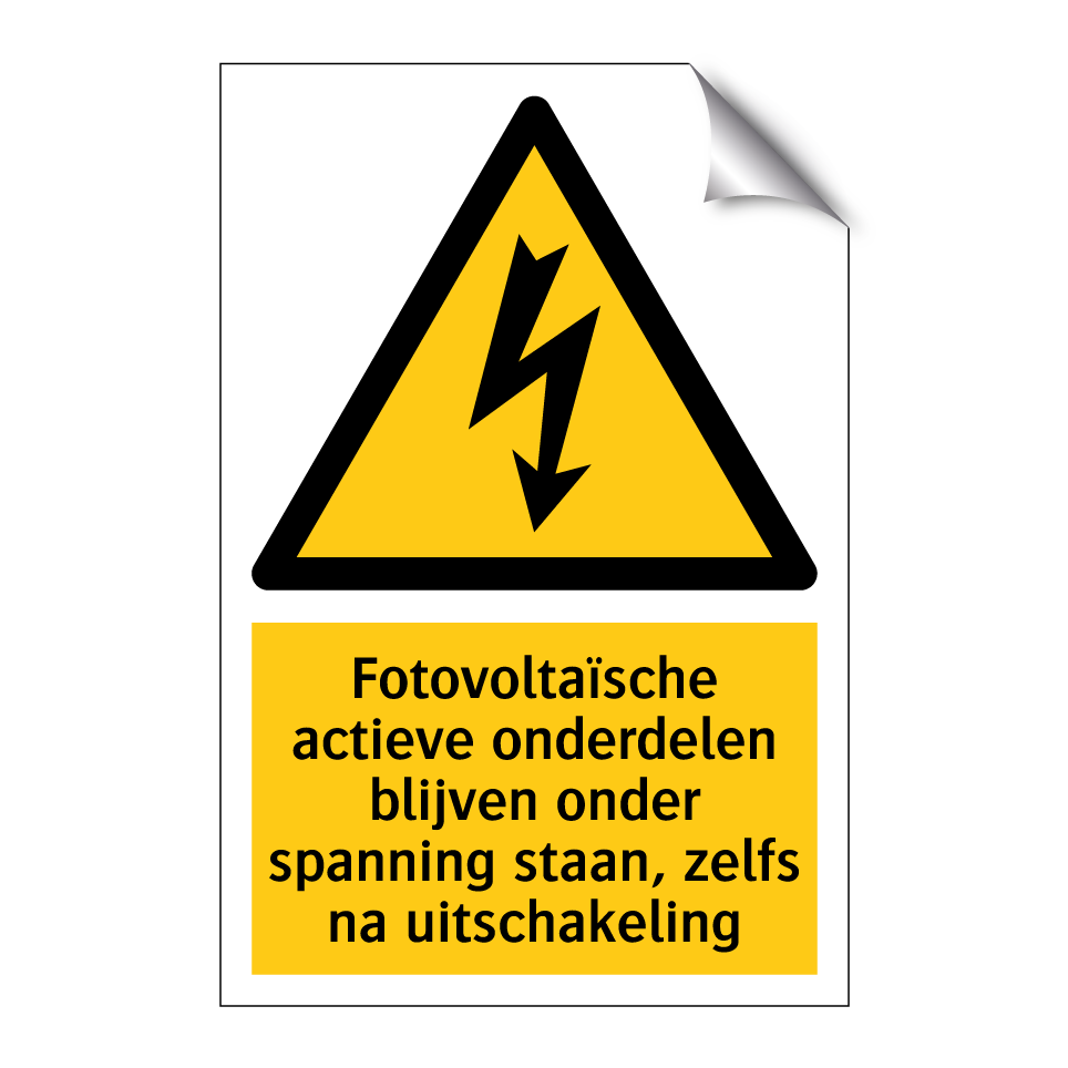 Fotovoltaïsche actieve onderdelen blijven onder spanning staan, zelfs na uitschakeling