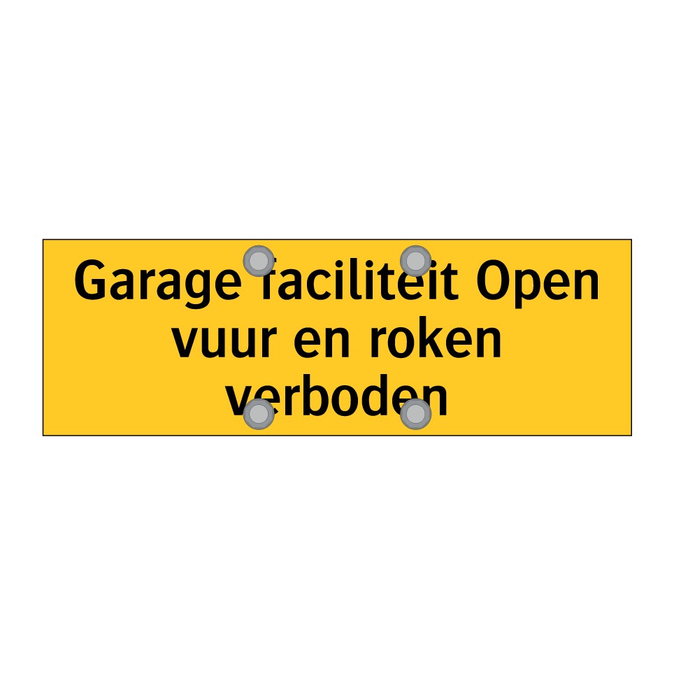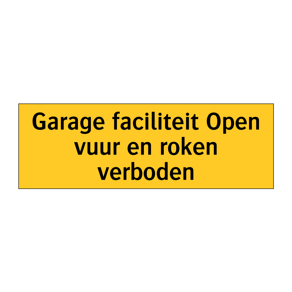 Waarschuwingsbord met de tekst Garage faciliteit Open vuur en roken verboden