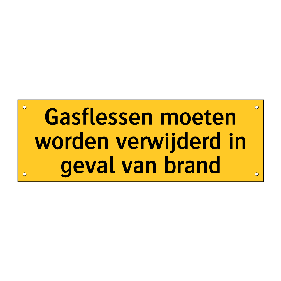 Waarschuwingsbord met de tekst Gasflessen moeten worden verwijderd in geval van brand