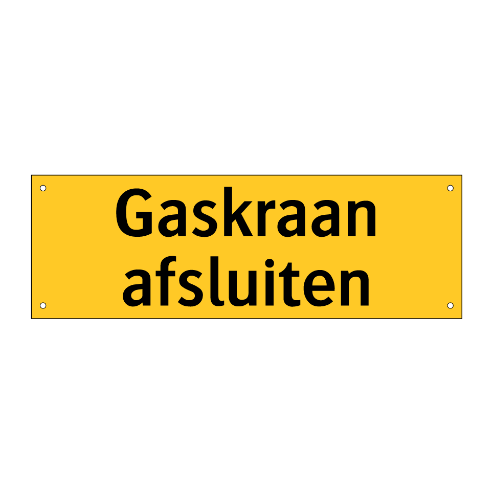 Waarschuwingsbord met de tekst Gaskraan afsluiten