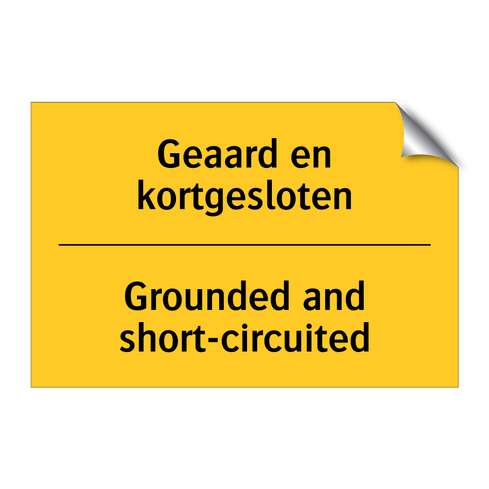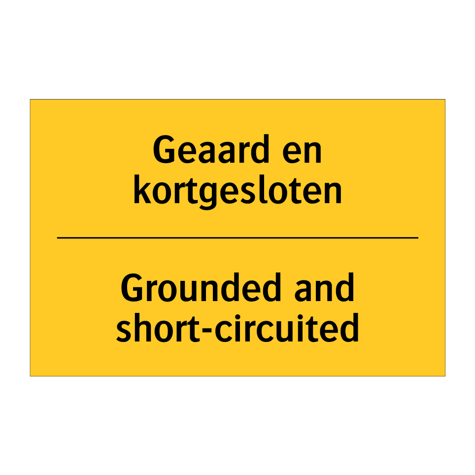 Waarschuwingsbord met de tekst Geaard en kortgesloten / Grounded and short-circuited