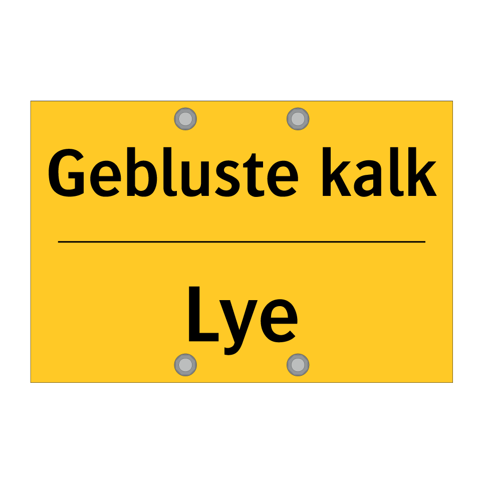 Waarschuwingsbord met de tekst Gebluste kalk / Lye