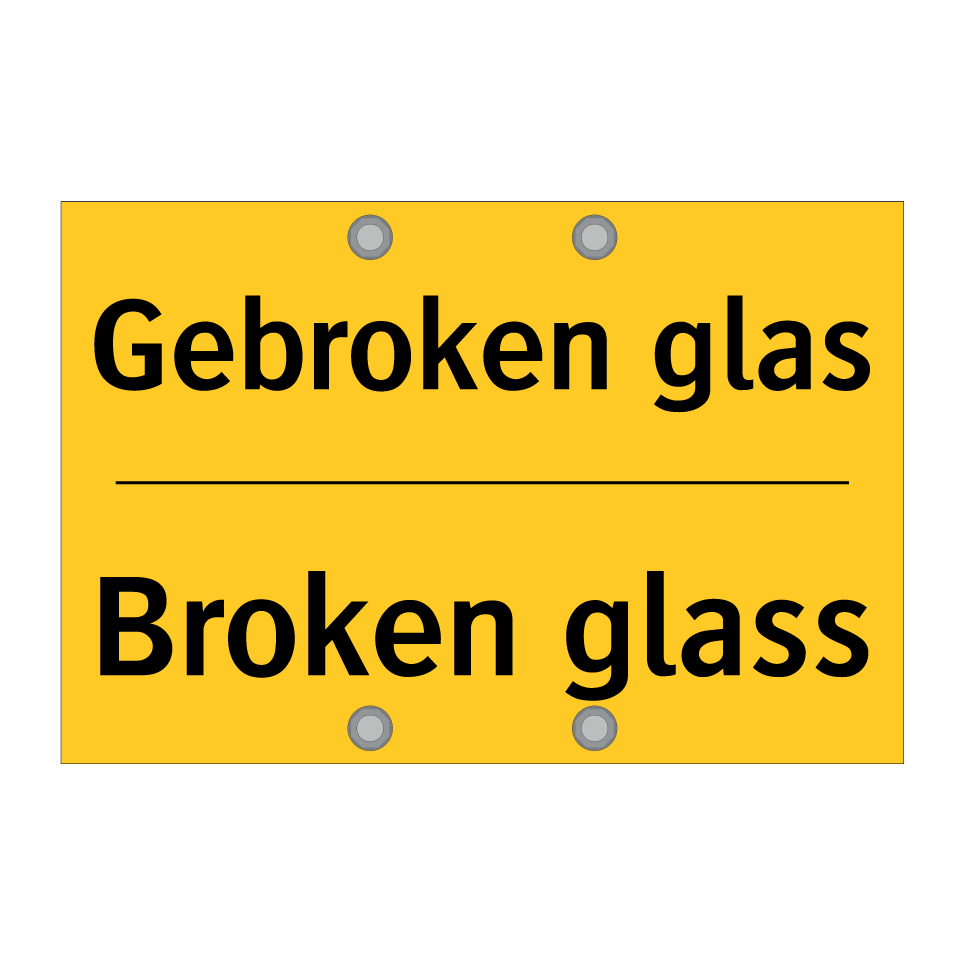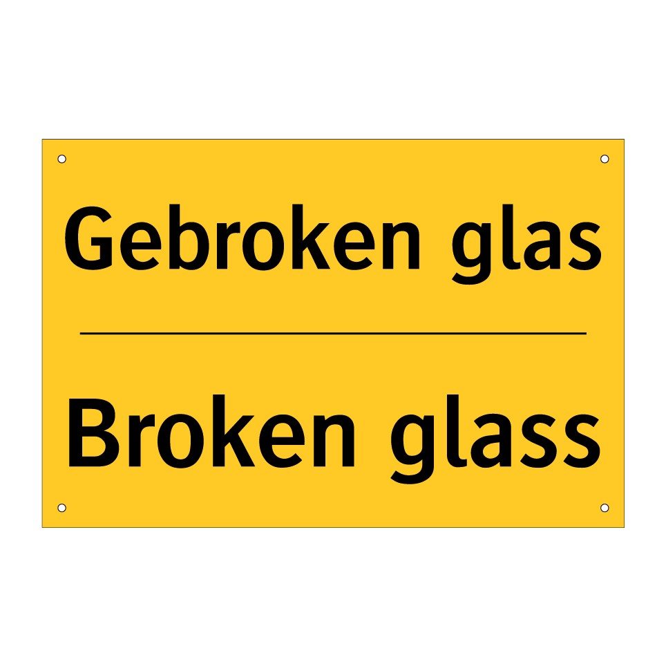 Waarschuwingsbord met de tekst Gebroken glas / Broken glass
