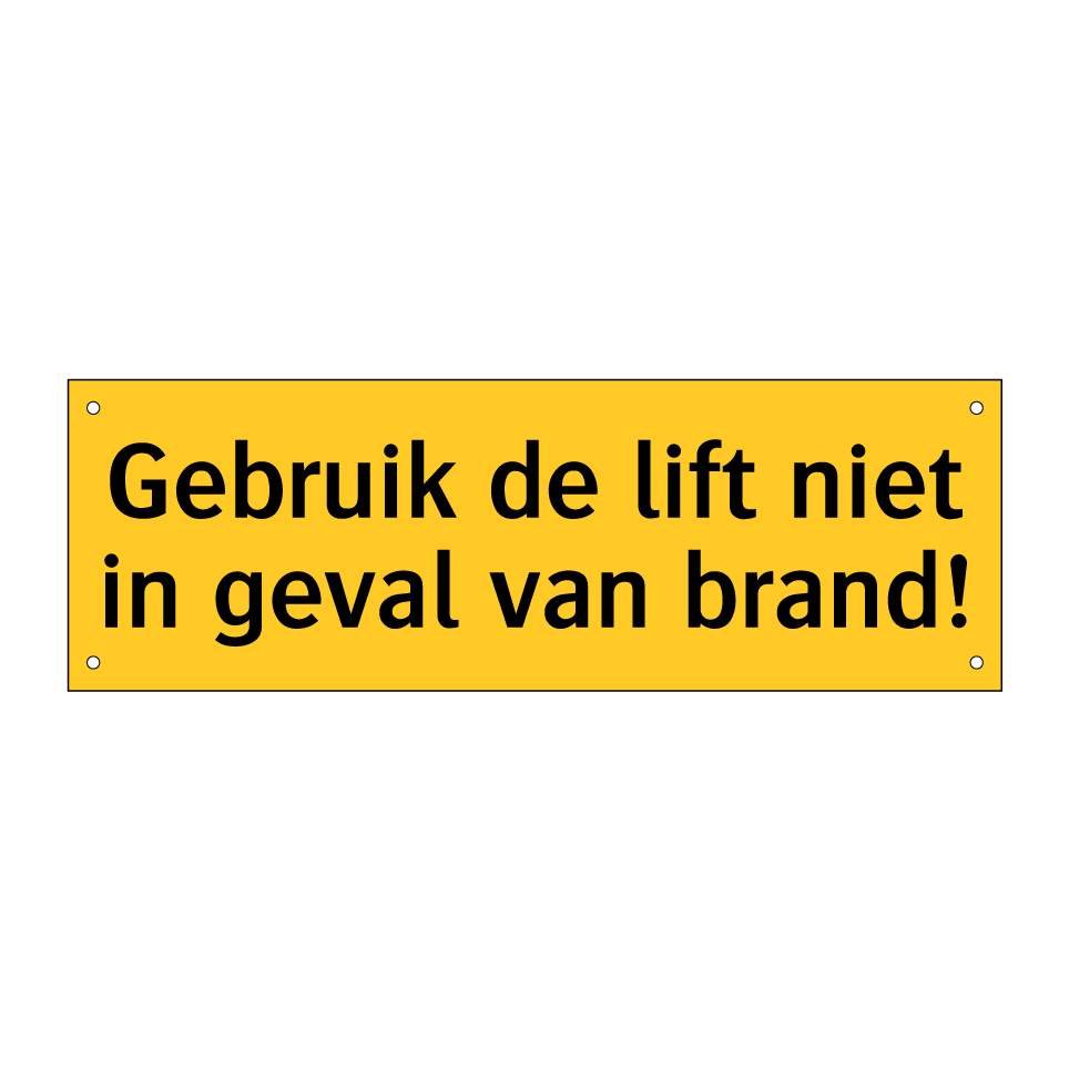 Waarschuwingsbord met de tekst Gebruik de lift niet in geval van brand!
