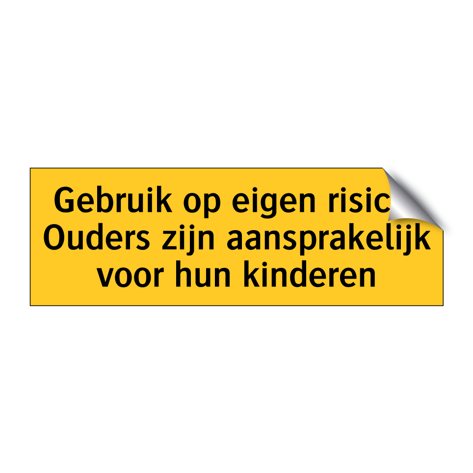 Waarschuwingsbord met de tekst Gebruik op eigen risico! Ouders zijn aansprakelijk voor hun kinderen