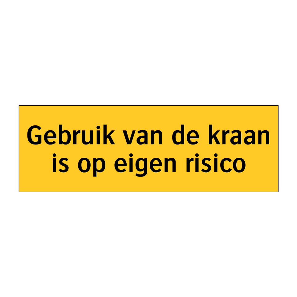 Waarschuwingsbord met de tekst Gebruik van de kraan is op eigen risico