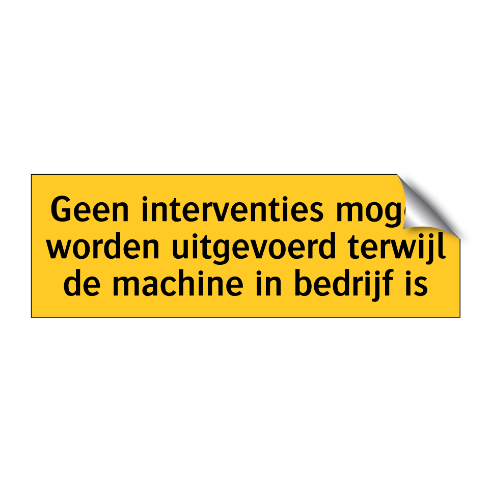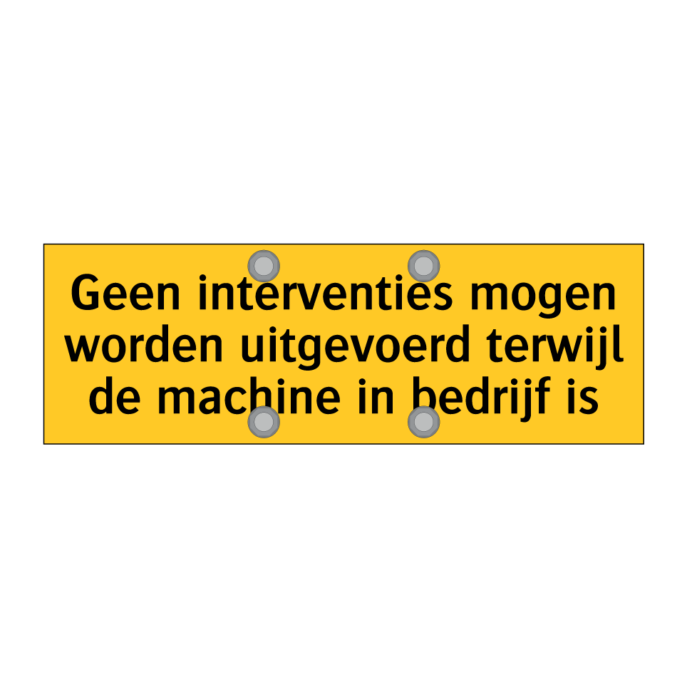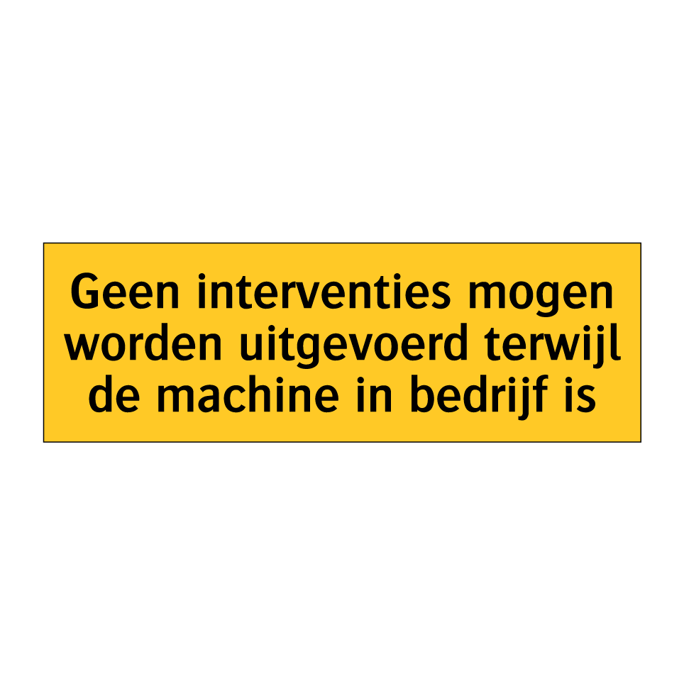 Waarschuwingsbord met de tekst Geen interventies mogen worden uitgevoerd terwijl de machine in bedrijf is