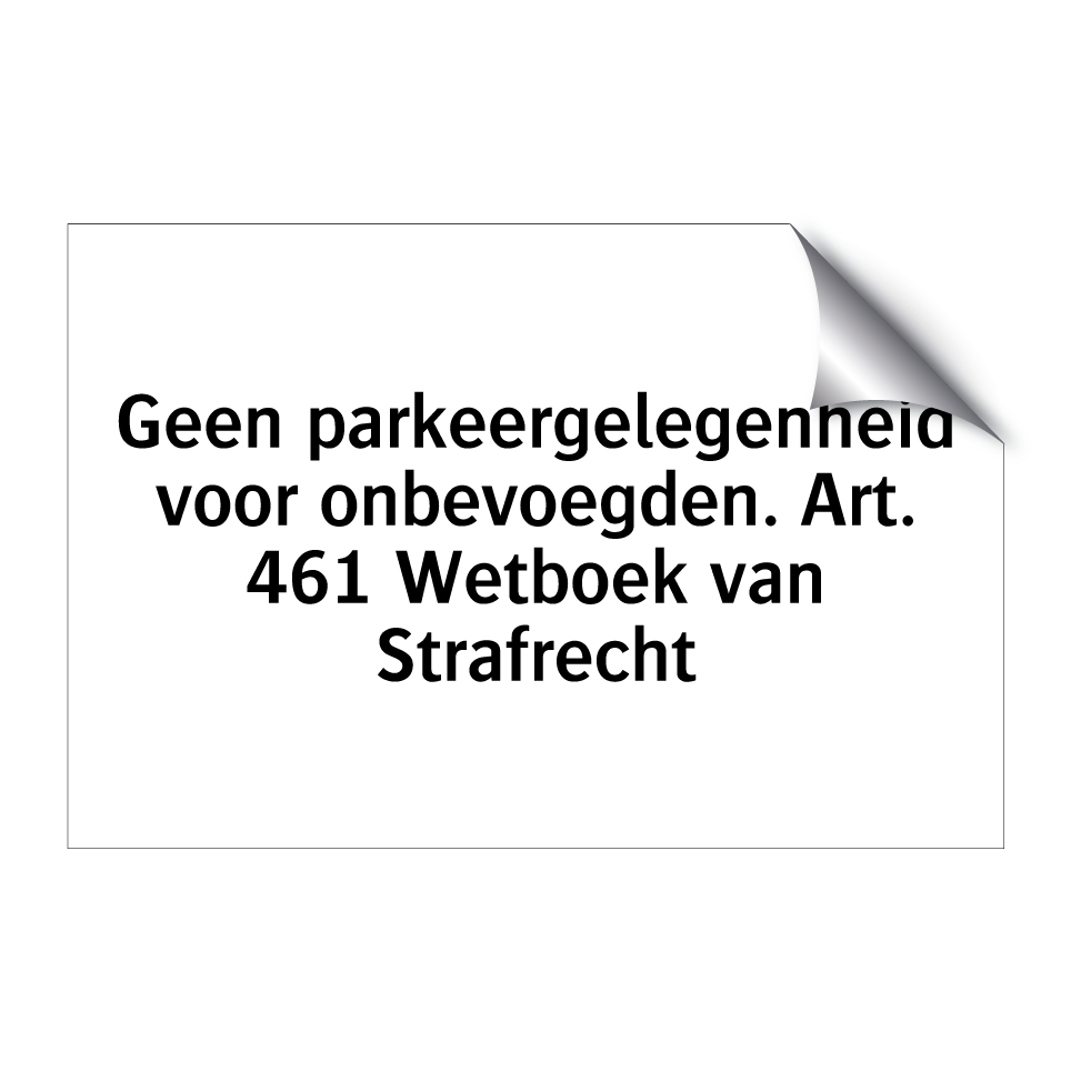 Verbodsbord met de tekst Geen parkeergelegenheid voor onbevoegden. Art. 461 Wetboek van Strafrecht
