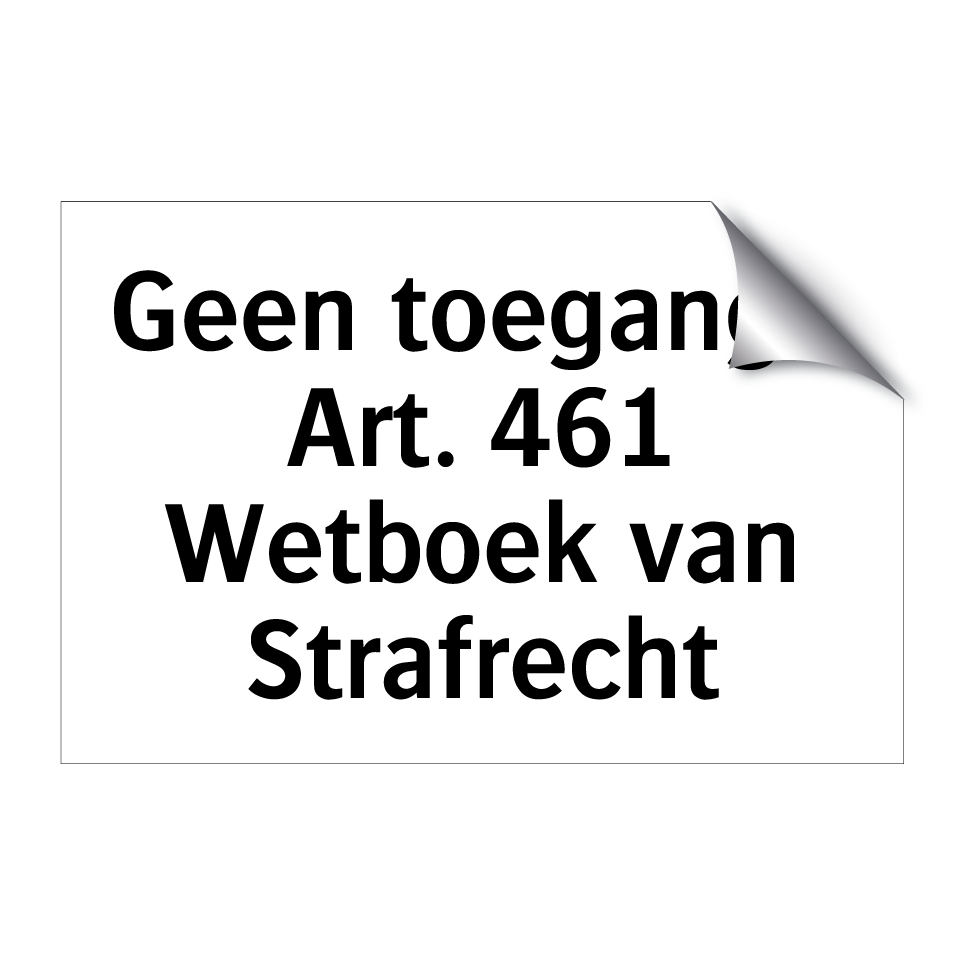 Verbodsbord met de tekst Geen toegang - Art. 461 Wetboek van Strafrecht