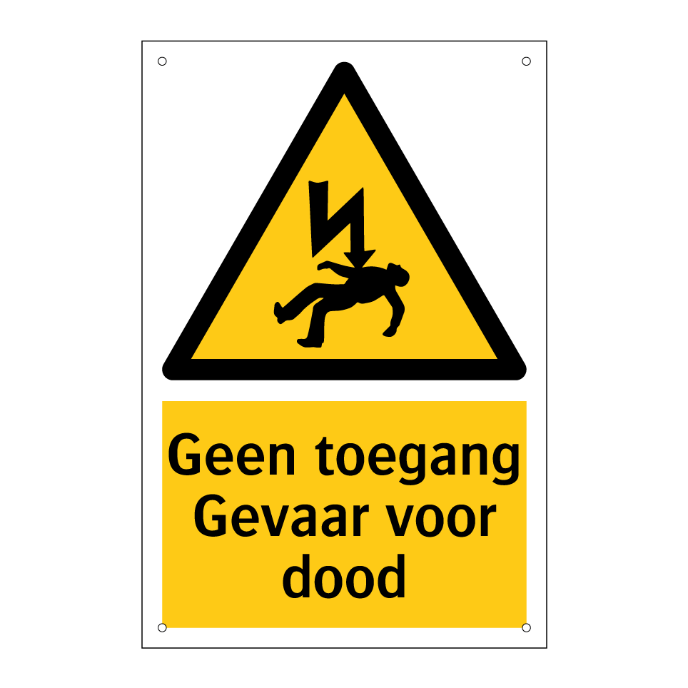 Waarschuwingsbord met de tekst Geen toegang Gevaar voor dood