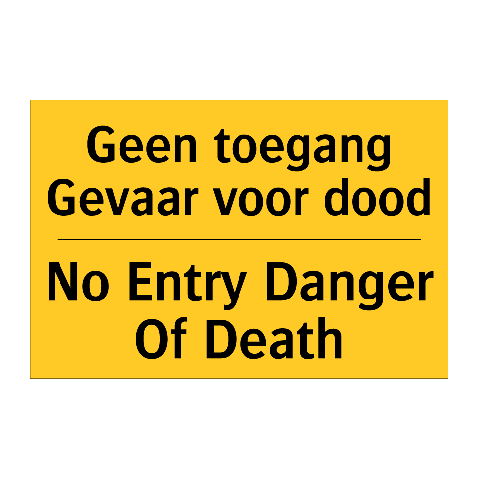 Waarschuwingsbord met de tekst Geen toegang Gevaar voor dood / No Entry Danger Of Death