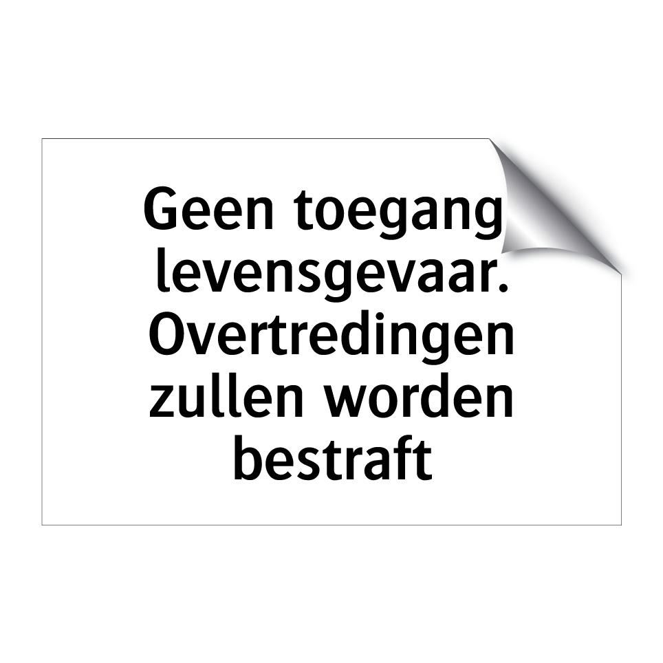 Verbodsbord met de tekst Geen toegang, levensgevaar. Overtredingen zullen worden bestraft