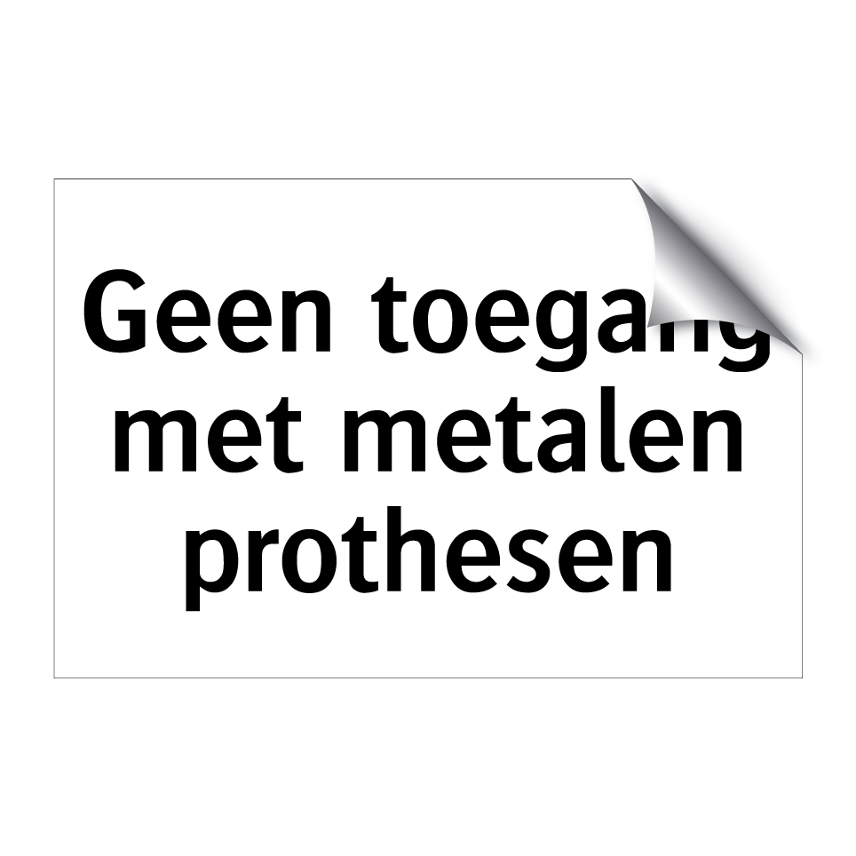 Verbodsbord met de tekst Geen toegang met metalen prothesen