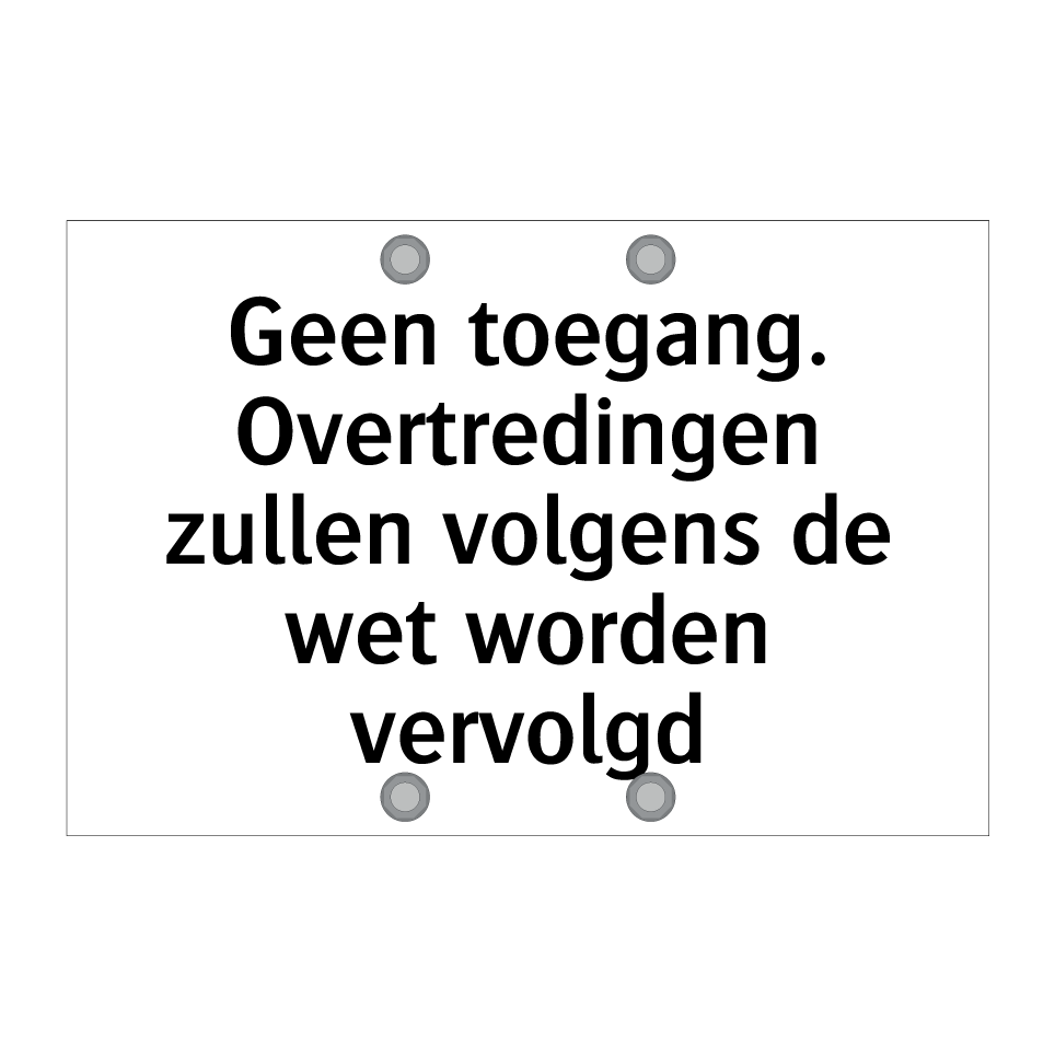 Verbodsbord met de tekst Geen toegang. Overtredingen zullen volgens de wet worden vervolgd
