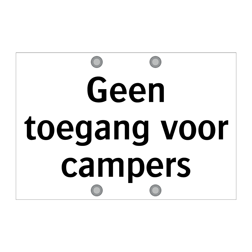 Deze verbodsbord is ideaal voor het duidelijk aangeven van verboden toegang voor campers. Het is perfect voor gebruik op privéterreinen, parkeerplaatsen of andere gebieden waar campers niet gewenst zijn. Door de opvallende witte achtergrond en zwarte tekst is de boodschap helder en onmiskenbaar. Plaats deze bord bij de ingang van uw terrein, op parkeerplaatsen of bij toegangswegen om ongewenste voertuigen te weren. Het helpt bij het handhaven van regels en het beschermen van uw eigendom tegen ongewenste toegang. Dit bord is een essentiële toevoeging voor elke locatie die specifieke toegangseisen heeft.