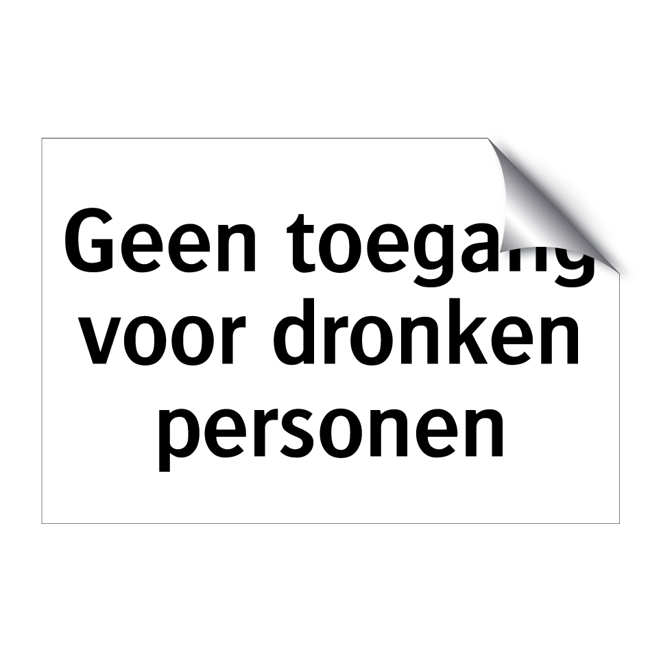Verbodsbord met de tekst Geen toegang voor dronken personen