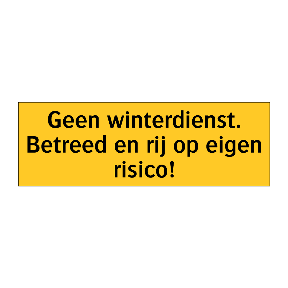 Waarschuwingsbord met de tekst Geen winterdienst. Betreed en rij op eigen risico!