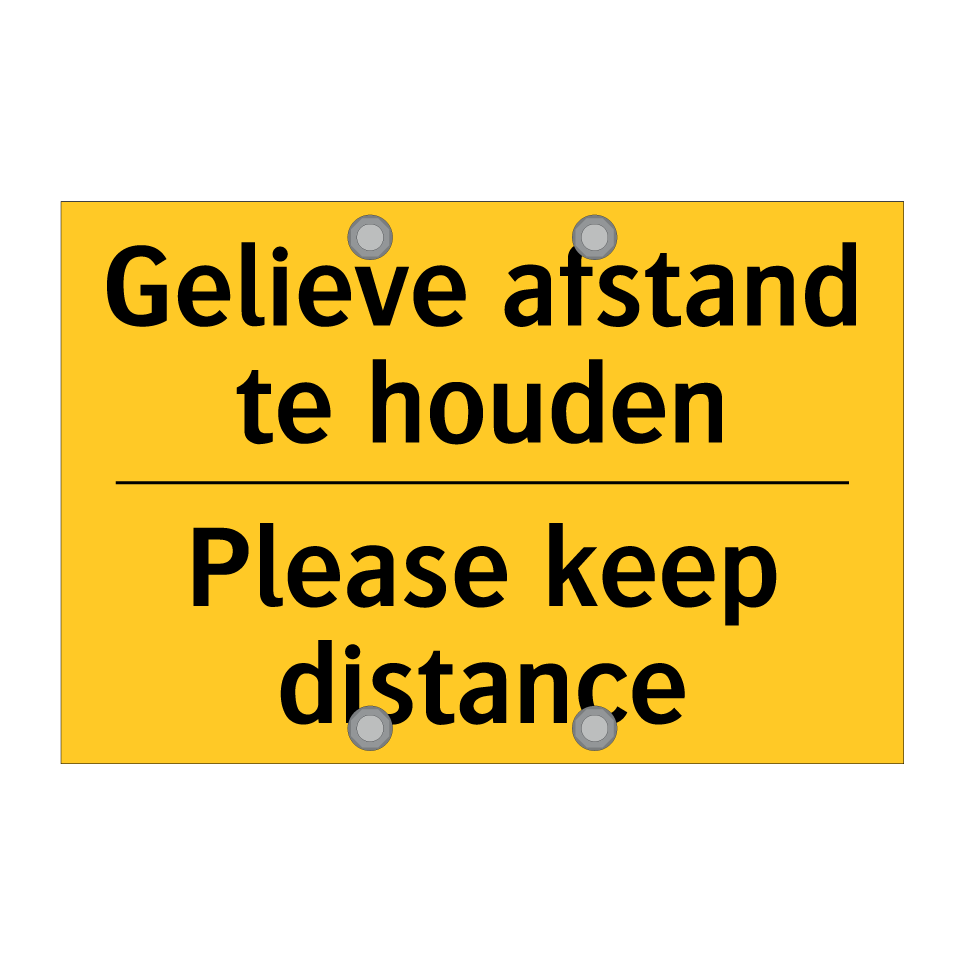 Waarschuwingsbord met de tekst Gelieve afstand te houden / Please keep distance