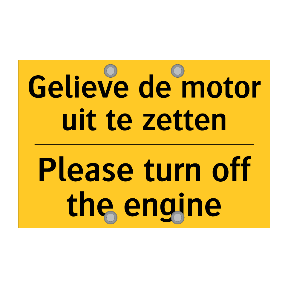 Waarschuwingsbord met de tekst Gelieve de motor uit te zetten / Please turn off the engine