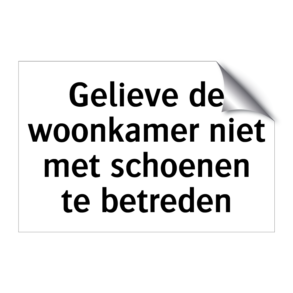 Verbodsbord met de tekst Gelieve de woonkamer niet met schoenen te betreden
