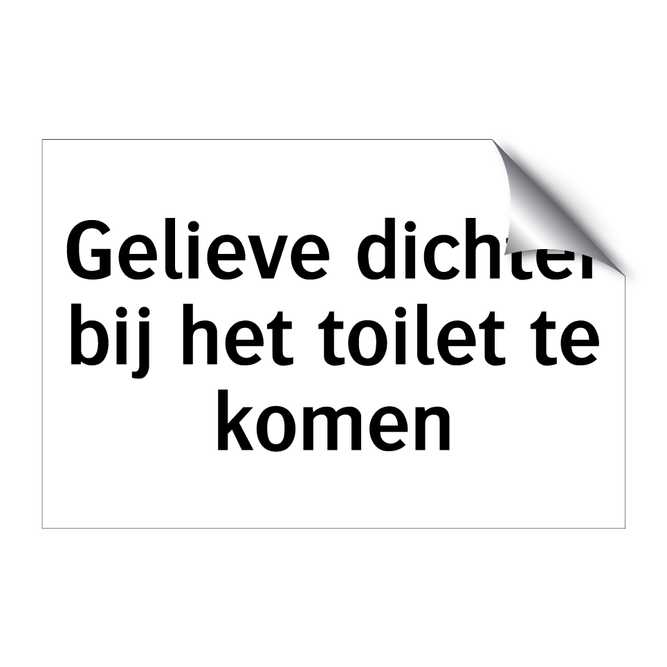 Verbodsbord met de tekst Gelieve dichter bij het toilet te komen