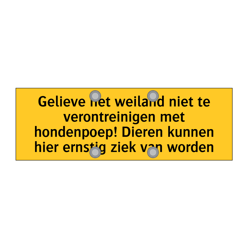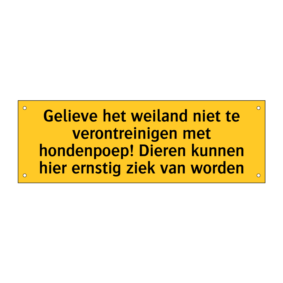 Deze waarschuwingsbord is essentieel voor het beschermen van weilanden tegen vervuiling door hondenpoep. Plaats deze bord op strategische locaties zoals ingangen van weilanden, parken en natuurgebieden om eigenaren van huisdieren te waarschuwen. Het doel van deze bord is om dieren te beschermen tegen ernstige ziektes die kunnen worden veroorzaakt door hondenuitwerpselen. Door deze waarschuwingsbord te gebruiken, draagt u bij aan een schonere en veiligere omgeving voor zowel dieren als mensen. Ideaal voor gebruik in agrarische gebieden, recreatieparken en andere groene zones waar dieren grazen.