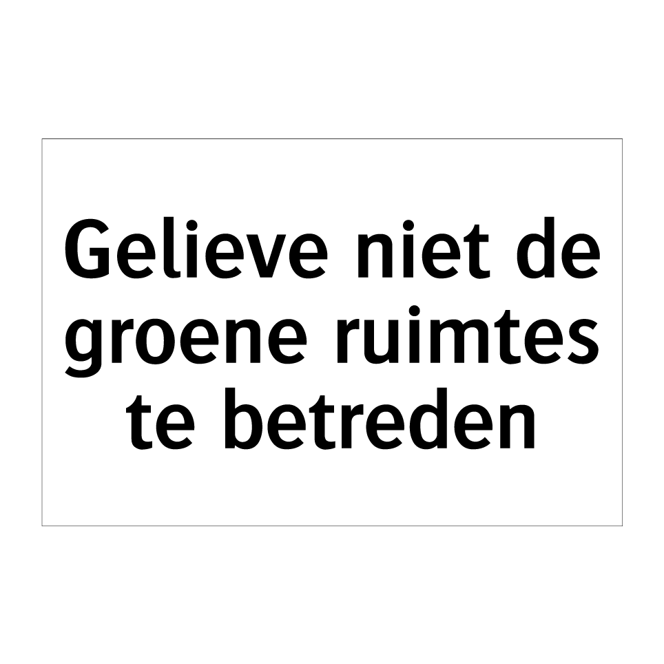 Verbodsbord met de tekst Gelieve niet de groene ruimtes te betreden