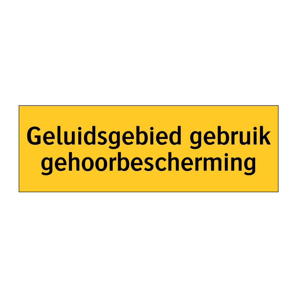 Waarschuwingsbord met de tekst Geluidsgebied gebruik gehoorbescherming