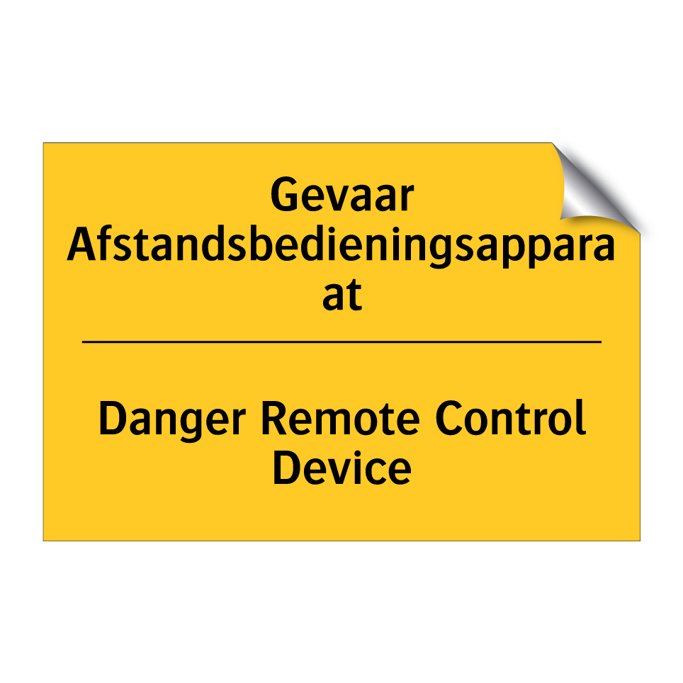 Waarschuwingsbord met de tekst Gevaar Afstandsbedieningsapparaat / Danger Remote Control Device