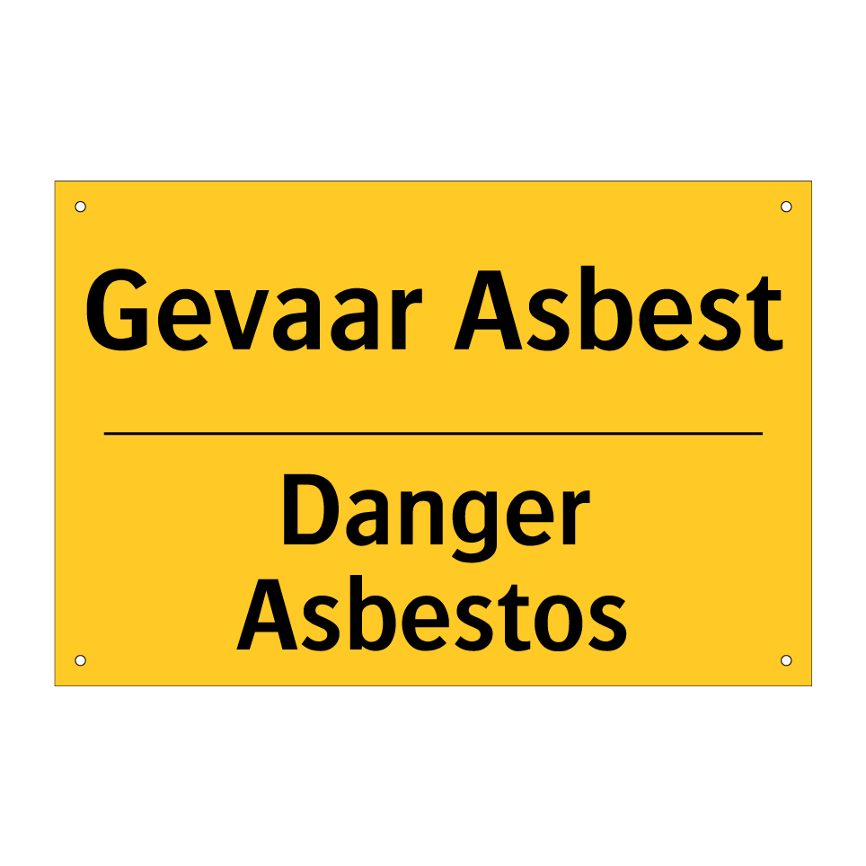 Waarschuwingsbord met de tekst Gevaar Asbest / Danger Asbestos