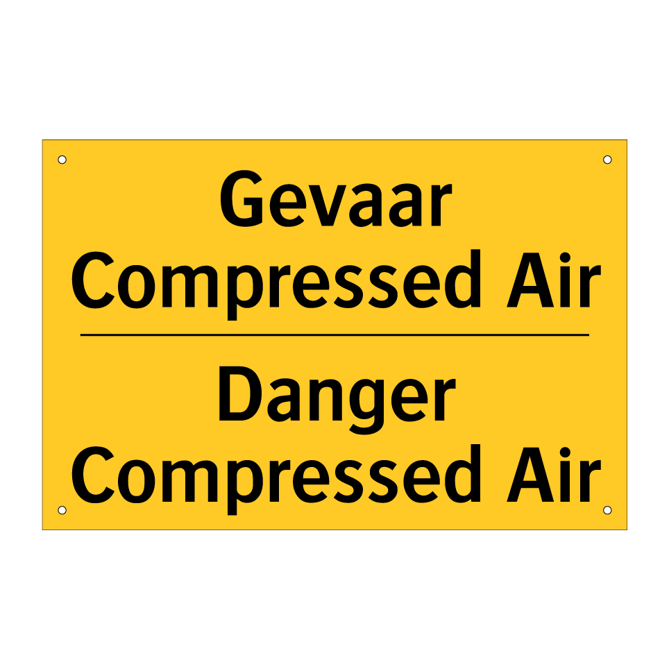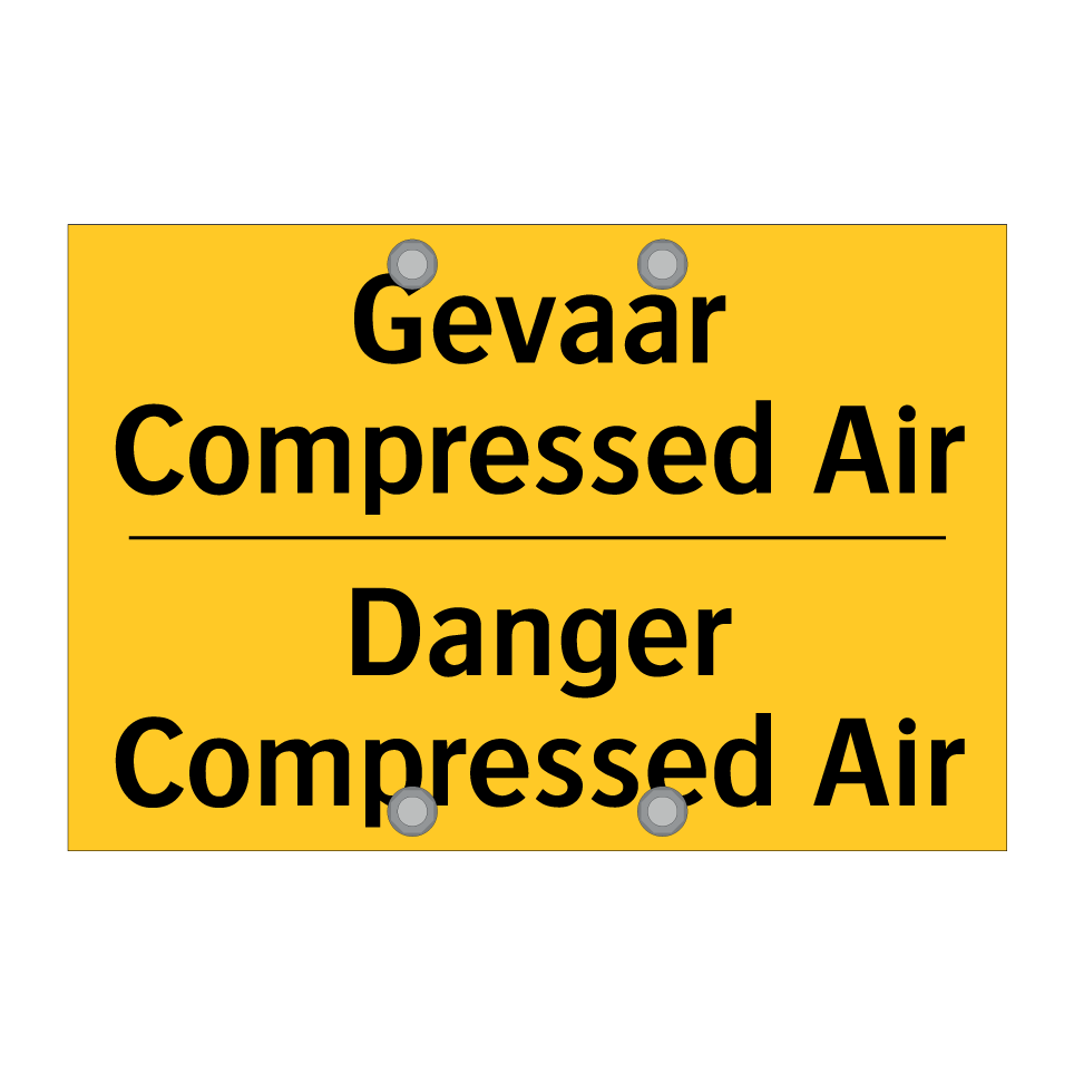 Waarschuwingsbord met de tekst Gevaar Compressed Air / Danger Compressed Air