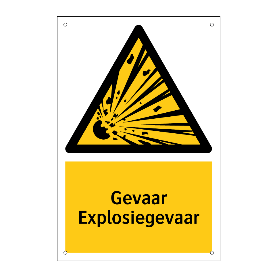 Waarschuwingsbord met de tekst Gevaar Explosiegevaar