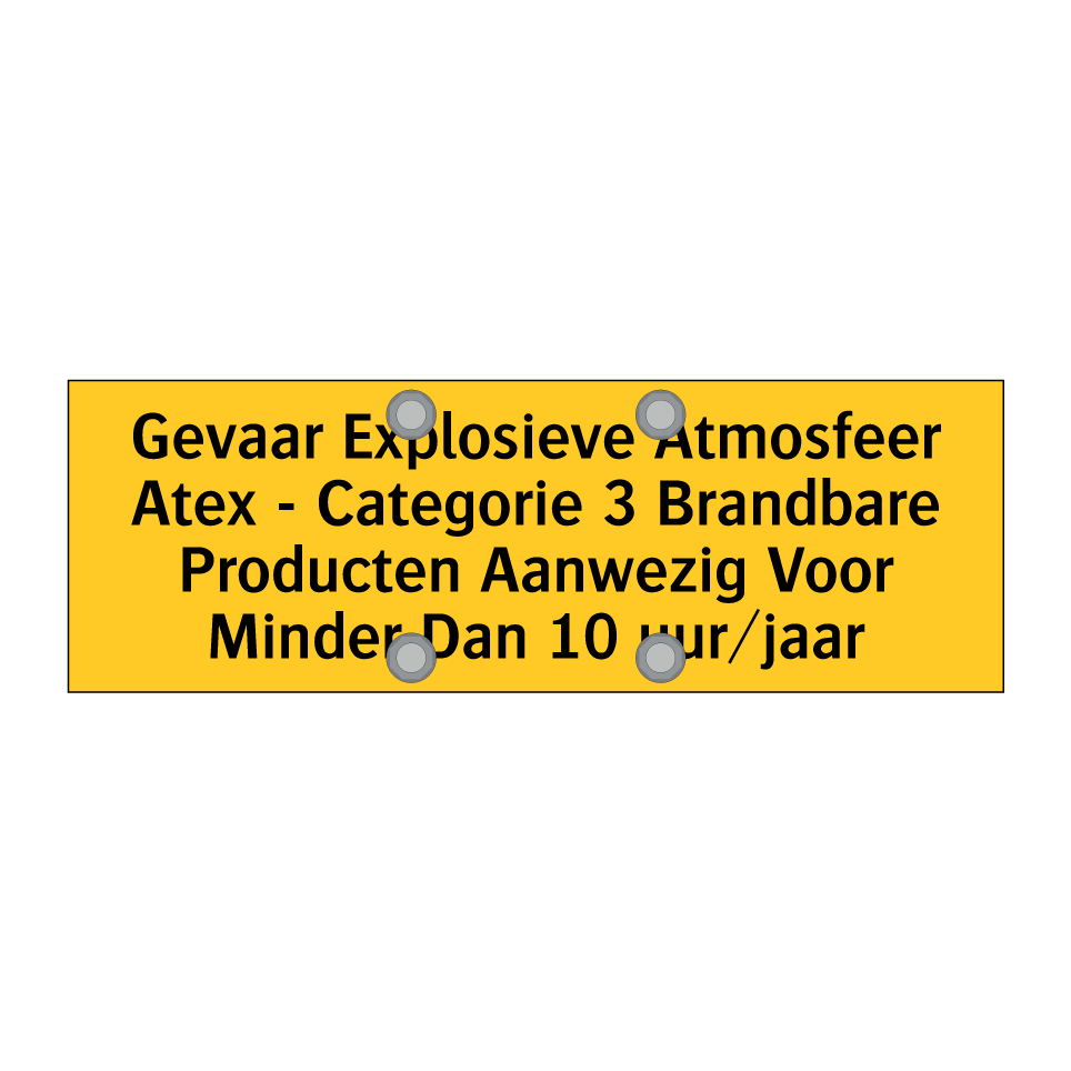 Waarschuwingsbord met de tekst Gevaar Explosieve Atmosfeer Atex - Categorie 3 Brandbare Producten Aanwezig Voor Minder Dan 10 uur/jaar
