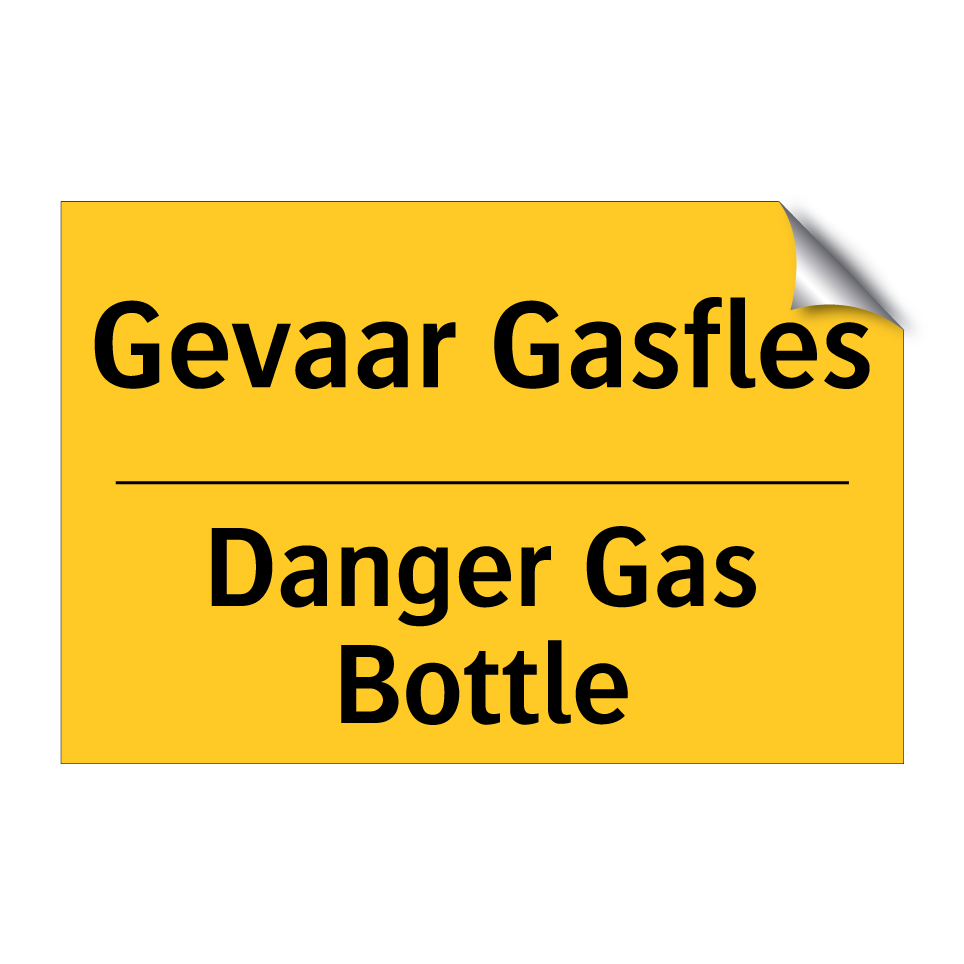 Waarschuwingsbord met de tekst Gevaar Gasfles / Danger Gas Bottle