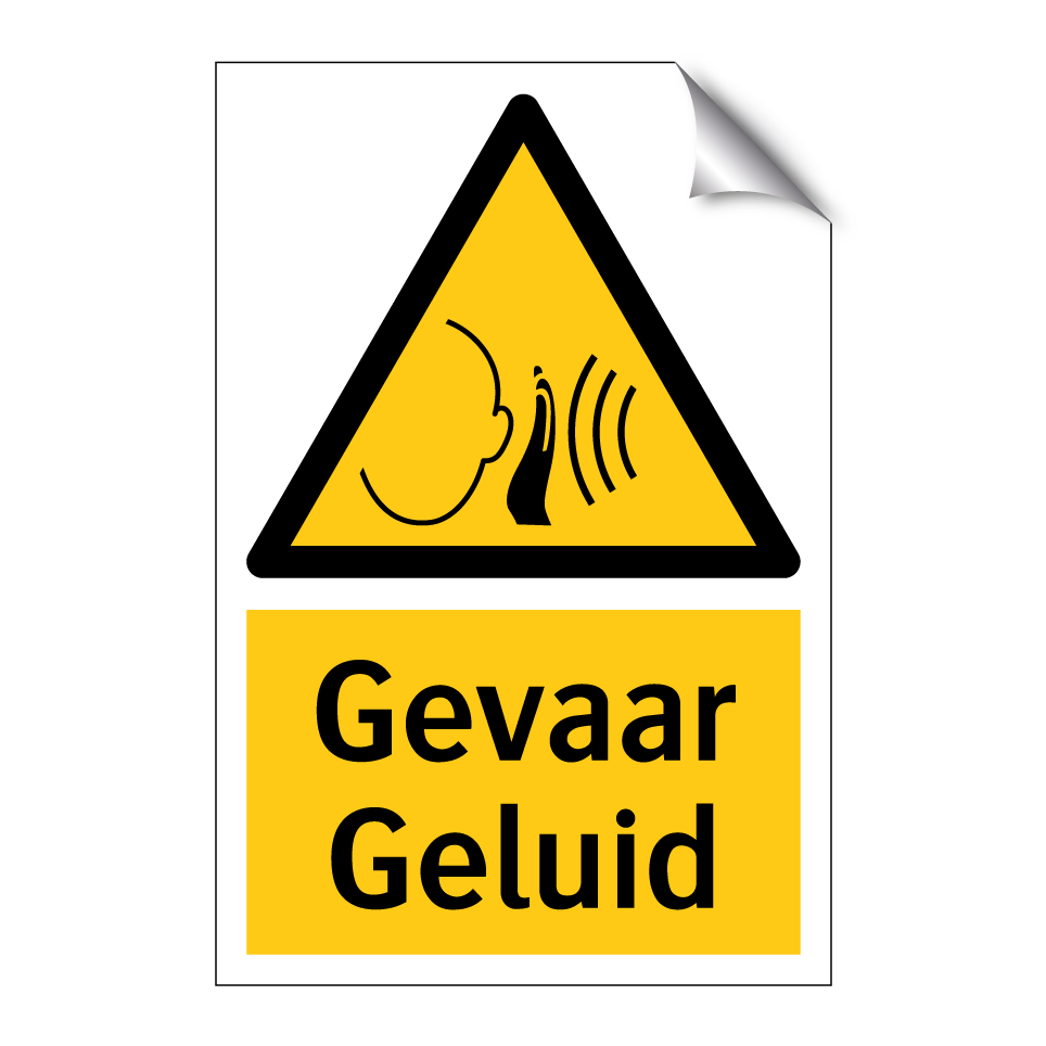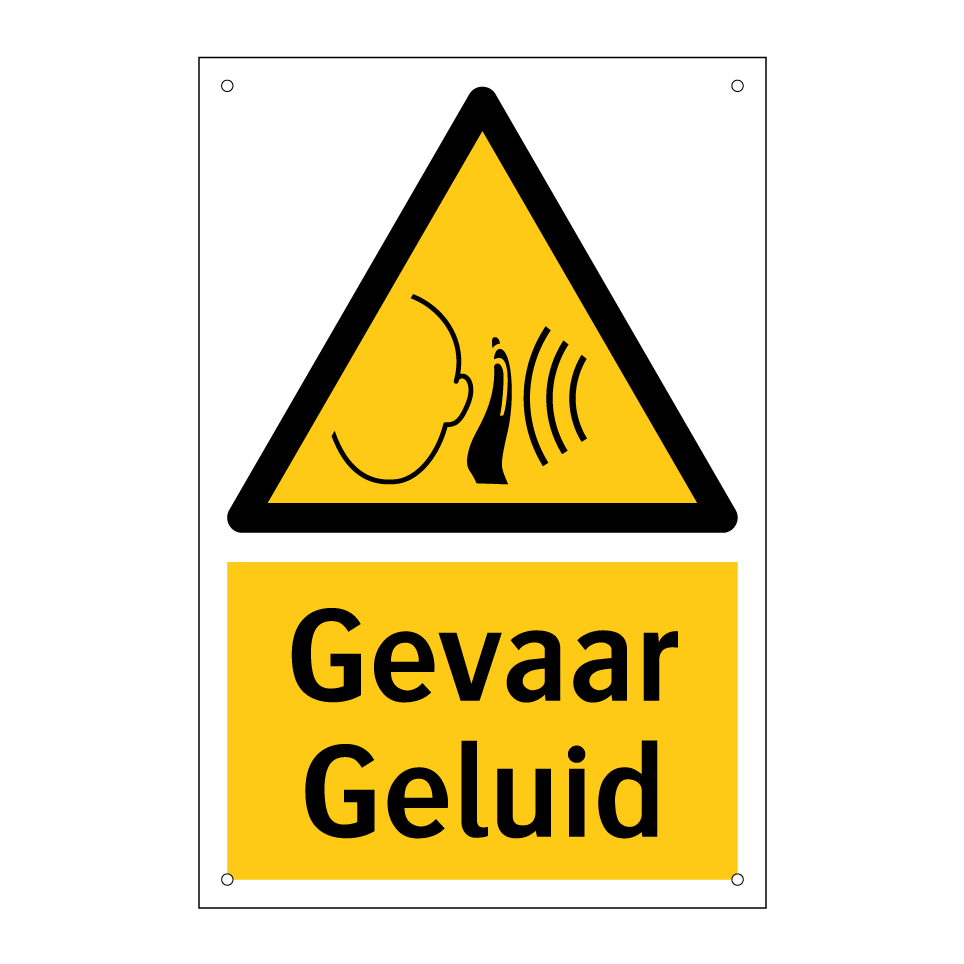 Waarschuwingsbord met de tekst Gevaar Geluid