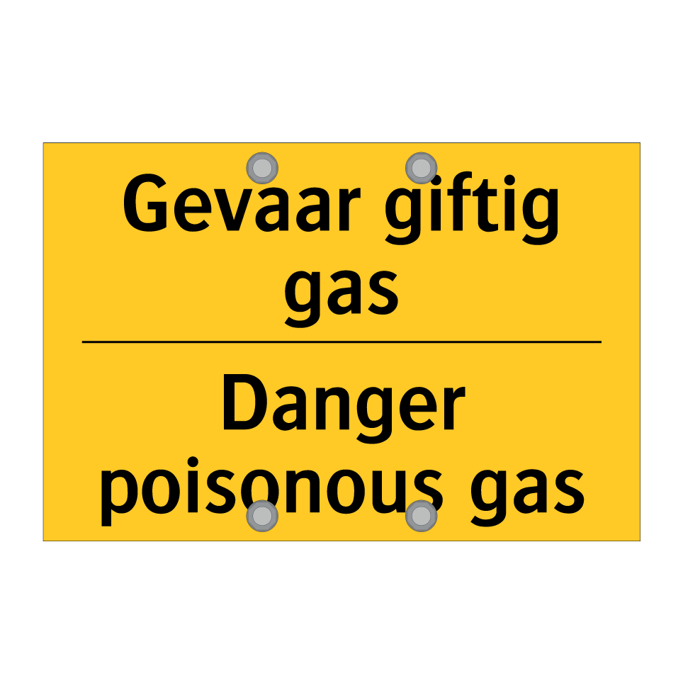 Waarschuwingsbord met de tekst Gevaar giftig gas / Danger poisonous gas