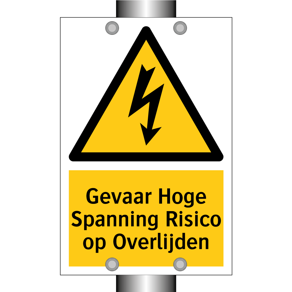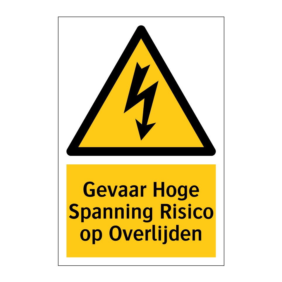 Waarschuwingsbord met de tekst Gevaar Hoge Spanning Risico op Overlijden