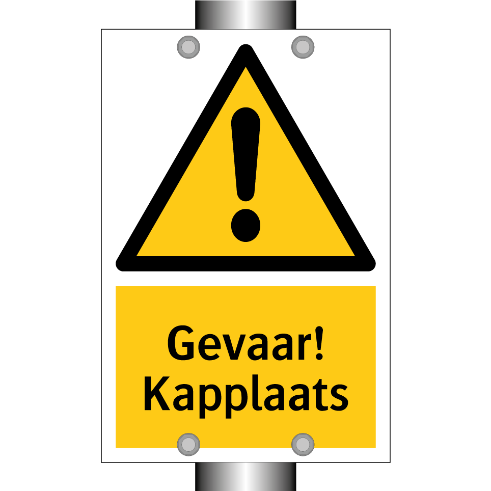 Waarschuwingsbord met de tekst Gevaar! Kapplaats