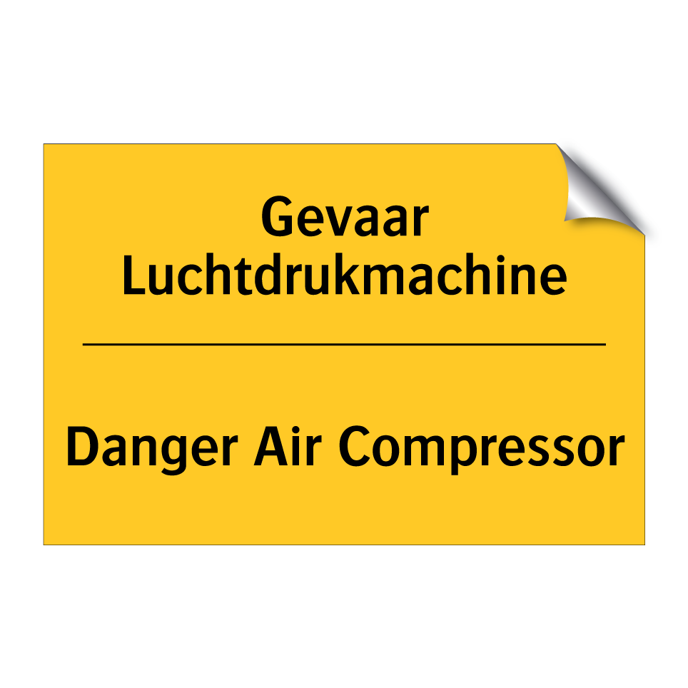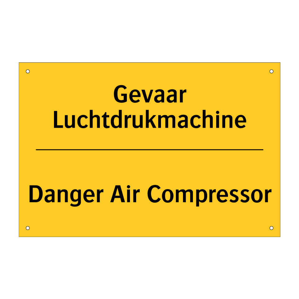 Waarschuwingsbord met de tekst Gevaar Luchtdrukmachine / Danger Air Compressor