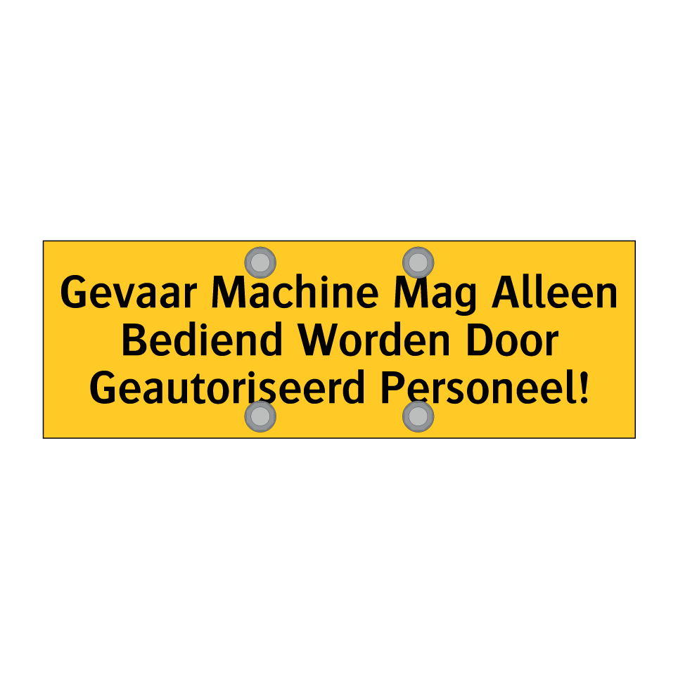 Waarschuwingsbord met de tekst Gevaar Machine Mag Alleen Bediend Worden Door Geautoriseerd Personeel!
