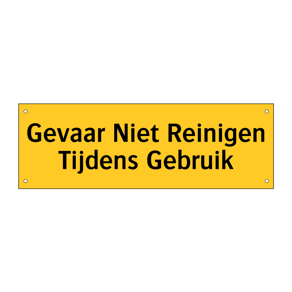 Waarschuwingsbord met de tekst Gevaar Niet Reinigen Tijdens Gebruik