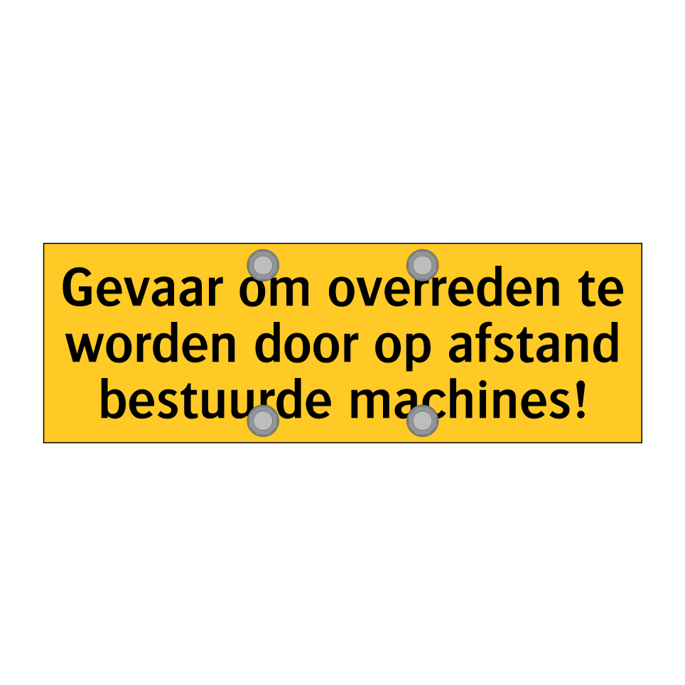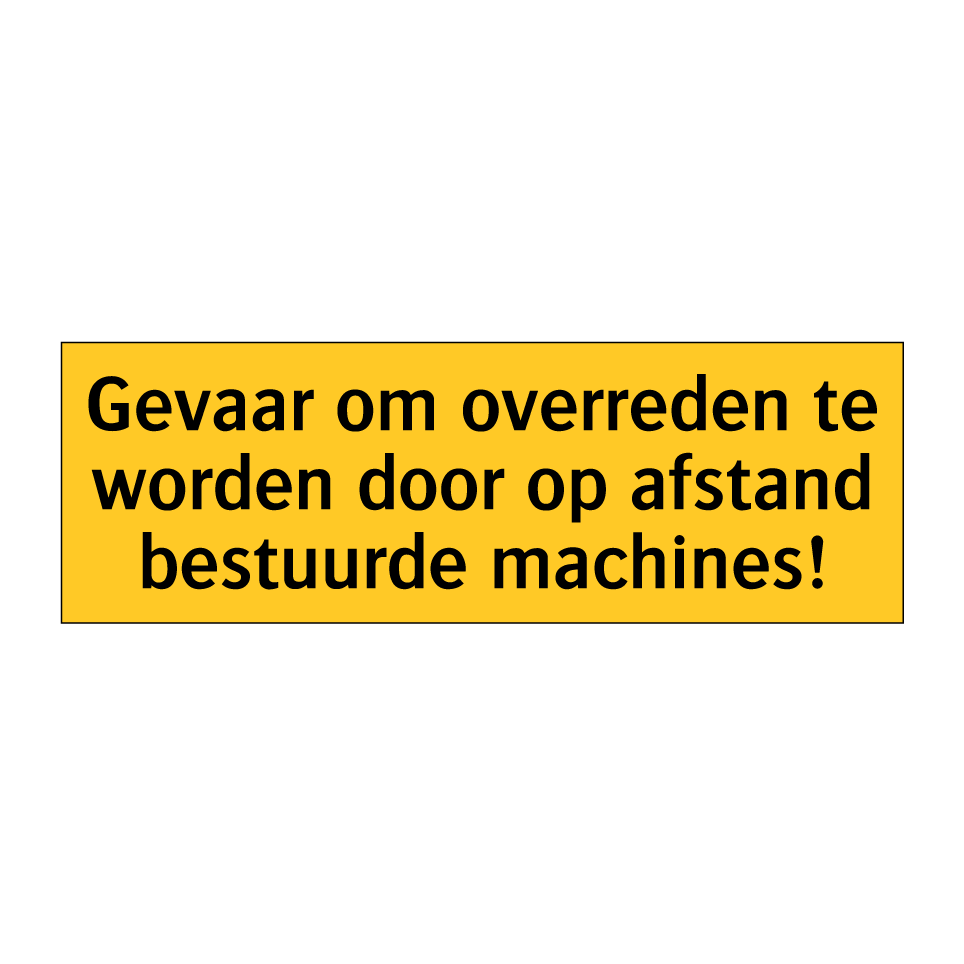 Waarschuwingsbord met de tekst Gevaar om overreden te worden door op afstand bestuurde machines!